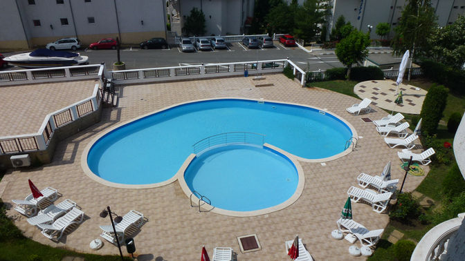 Amenities: Air conditioning, shared pool and toddler pool, free parking, WiFi access across the resort, shuttle bus Nearby: 2 water-parks, 17 miles Bourgas airport, 10 mins to Sunny Beach, 5 min walk to St Vlas village